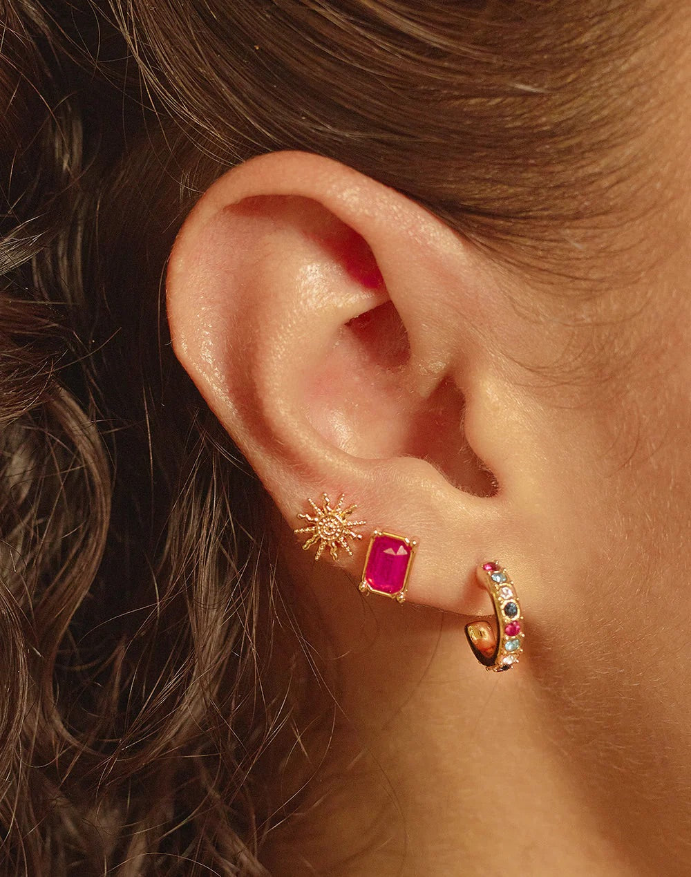 Boreal Earrings Set. Small hoop, stud